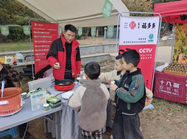 活動現場人頭攢動,福多多豬肉、東安雞、安化黑茶、米米糙米、土雞蛋、黑山羊、蘆筍面等數十種綠色有機地標農產品整齊陳列,從生鮮肉類到糧油干貨,從傳統茶飲到生態禽蛋,全方位覆蓋居民日常飲食需求。參展現場支起灶臺,演示綠色優質食材的烹飪技藝:金黃的東安雞下鍋煲湯,香氣撲鼻;新鮮的豬肉烤制,金黃焦脆色澤誘人;現場沖泡的安化有機黑茶,茶湯醇厚回甘。“這些食材不用過多調味就很鮮美,吃著放心!”剛品嘗完菜肴的居民點贊道,不少人當場下單,將健康美味“拎回家”。